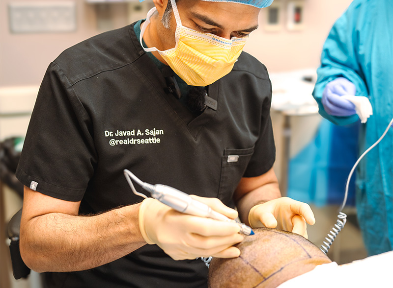 Dr. Sajan uses advanced FUE techniques to ensure transplanted hair blends naturally with existing hair, which is critical for achieving a convincingly feminine appearance.